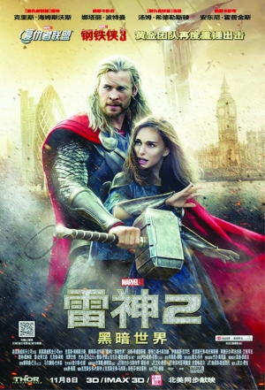由迪士尼影业出品,漫威影业制作的2013超级英雄巨制《雷神2:黑暗世界》确定中国档期:11月8日与北美同步上映,成为今年唯一一部与北美同步公映的分账大片。片方也于近日首度曝光中文版主海报,为电影进行预热。 《雷神2:黑暗世界》是漫威影业“电影宇宙”第二阶段的第二部作品(第一部是今年5月的《钢铁侠3》),剧情承接《复仇者联盟》,讲述纽约大战后雷神带洛基返回神域,却遭遇更大威胁来袭。为此雷神不得不求助于洛基,才有可能力挽狂澜。水火不相容的两人将擦出怎样的火花?令观众充满期待。 影片10月11日请来主角“洛基” 汤姆·希德勒斯顿首度访华,在北京为《雷神2:黑暗世界》宣传造势,吸引媒体与影迷热情关注。当日上午影片为媒体点映了30分钟精彩片段,展现出影片宏大格局、眼花缭乱的视效场面以及最受影迷关注的雷神与洛基的关系进展,让观众大饱眼福。片段结束于一个令人震惊的场景,甚至引发影厅内集体惊呼,获得连连好评。日前片方趁热打铁公布中文版主海报,并定下11月8日同步北美上映,使得《雷神2:黑暗世界》成为2013年唯一一部与北美同步引进的分账大片。 影片由艾伦·泰勒执导,泰勒因执导知名美剧《冰与火之歌:权力的游戏》引起关注,其对多角色的细腻刻画与对大场面的掌控能力大受好评。 |