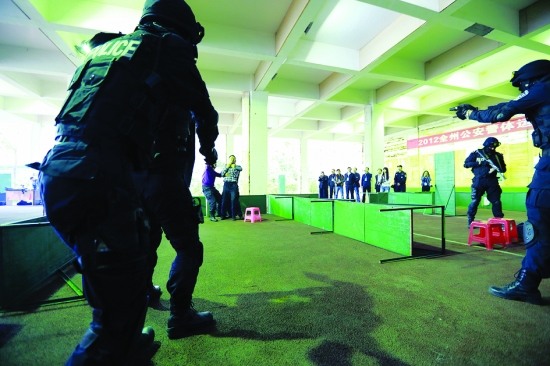 特警队员为营员们展示了武力营救人质战术演练。 马思动 摄