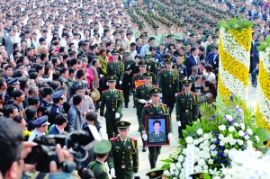 当日,在北京市喜隆多商场火灾中因公殉职的石景山消防支队参谋长刘洪坤烈士的骨灰从北京运回老家山东省滕州市,并安葬于滕州市烈士陵园。