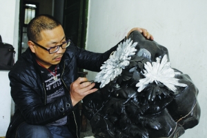 怎么设计图形,怎么选择雕刻方式,通过几年的埋头苦学,艰苦琢磨,他已经初步掌握其精髓和要领。而且,各种雕刻工具的运用,已得心应手,各种雕刻技法,已操作娴熟。他说:“菊花石雕来源于自然,一花一天堂,一石一世界,雕石要师法自然,顺应自然,精心设计,精雕细琢,想尽办法保持好菊花石的天然形态。”