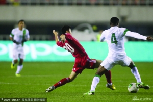 11月15日,中国男足队员武磊(左)在比赛中奋力抢断。当日,澳大利亚亚洲杯预选赛C组展开小组赛第四轮的争夺,中国男足坐镇西安迎战印尼队。开赛5分钟,于大宝精准直塞,郜林单刀打门被挡出。半场补时阶段,刘建业助攻武磊头球破门。下半场国足场面一度十分被动,印尼多次形成威胁。最终90分钟激战,国足1比0击败印尼,拿到亚预赛的第二场胜利,积分达到7分,稳住第二。 (据新华网)