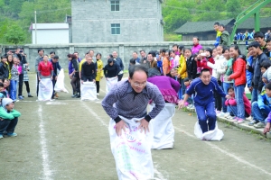 11月15日,龙山县红岩初中举行师生“袋鼠跳”接力赛。当日,该校开展趣味运动比赛,400多名师生参加了“袋鼠跳”、“瞎子敲锣”、拔河等趣味运动项目的比赛。该校一负责人介绍,学校不定期开展篮球、田径、趣味运动比赛,引导师生热爱运动,强壮体魄。 魏芳柏 童光现 彭 旭 摄