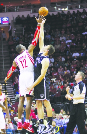 11月30日,NBA常规赛火箭主场迎战篮网。最终,火箭114比95战胜篮网,取得四连胜。帕森斯三分球6中6,砍下21分,6个篮板。霍华德12分7板,哈登9分7助攻,琼斯11分7板,林书豪因伤缺战。篮网这边,先发五虎仅洛佩兹一人得分上双,得到16分。泰利托维奇18分13板。 陆 峻 摄