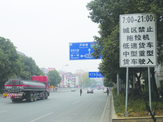 在吉首城区,该市交警部门提前设置好了交通限行标识牌。 杨继东 摄