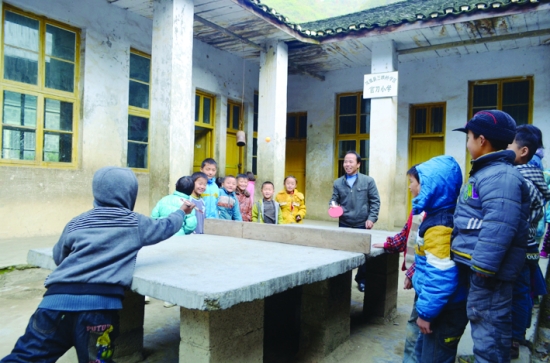 课间,龙佳军和孩子打成一片。