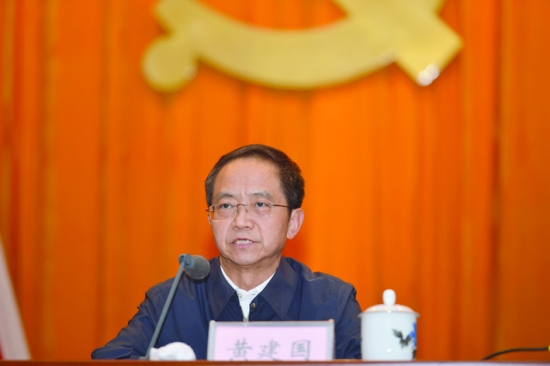 省委常委、省纪委书记黄建国在动员大会上讲话。 田宏贵 摄