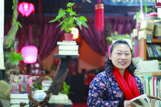史金玉在她优雅的书店里显得开心,悠闲自得。 向敏敏 摄
