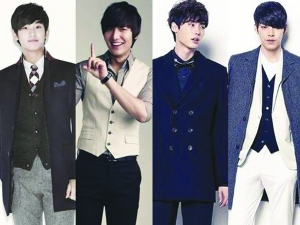 在华语“新四大天王”出炉之际,韩媒也评选出了“新韩流四大天王”。掀起《来自星星的你》热潮的“叫兽”金秀贤与《继承者们》的长腿欧巴李敏镐、金宇彬及《听见你的声音》的超能力少年李钟硕齐获韩国传媒封为“新韩流四大天王”,金秀贤与金宇彬更各自带挈所属事务所的股价飙升11.89%及16.71%,“钱途”光明。在新生代韩流男星中一直跻身前列的李升基、张根硕因近来稍显沉寂而落选。 (本报综合)