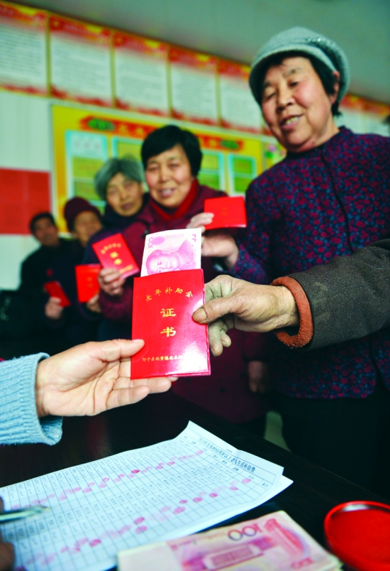 山东老人领取补助金