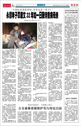 永顺孝子覃康文32年如一日服侍重病母亲
