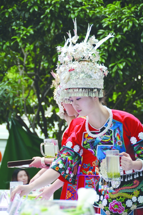 现场取用白沙古井水,冲泡古丈毛尖茶,让各位嘉宾进行品尝。