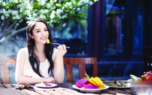 日前,时尚女星董璇一组杂志大片曝光。董璇演绎初夏缤纷色彩,清新典雅,十足女神魅力,上演女神与美食的美味舌尖诱惑。 (本报综合)