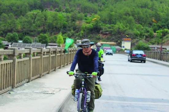 爬过骑行征途中的第一座雪山,王方明和骑友骑行在德钦县城的路上,领略的又是另一番风景。