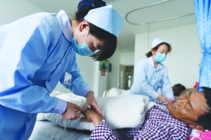 5月29日,青海格尔木人民医院护士张建文(左)在为患者输液。