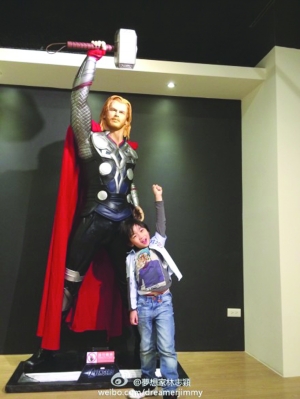 6月7日是2014全国高考第一天,贴心的小KIMI也在爸爸林志颖的微博上发出能量满满的鼓励。两张照片中,小KIMI明显长高不少,他先学身后的雷神握拳冲天,一脸志在必得的自信与兴奋,接着又在第二张照片里模仿起了墙上的蜘蛛侠,看似已经学会了蜘蛛侠高大上的独门秘籍喔!林志颖的微博上写道:“祝在考试的葛葛姐姐们一定会赢的!加油!相信自己哦!”果然萌娃魅力大,中午发出的微博已经有5万个点赞,许多网友评论都带着爱心,赞KIMI是个小帅哥。
