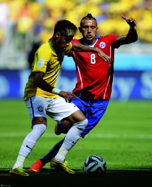 今日凌晨,世界杯1/8决赛在贝洛奥里藏特米内罗球场开始首场角逐,巴西与智利120分钟内战为1比1平,点球决战巴西3比2胜出,最终以4比3击败智利挺进八强。 巴西队队长蒂亚戈-席尔瓦助攻中卫搭档路易斯首开纪录,智利队员桑切斯扳平比分。下半时,胡尔克将球打进,但被判手球在先。第120分钟,智利替补皮尼利亚射中横梁。点球战,塞萨尔扑出皮尼利亚和桑切斯点球,布拉沃扑出胡尔克点球,威廉射偏,哈拉射中门柱。 巴西近12场取胜11场,唯一例外是小组赛0比0平墨西哥。2002年8月负巴拉圭后,巴西连续40个主场不败。1990年0比1负阿根廷后,巴西连续5届淘汰赛首战均过关,共打进13球,其中4场零封对手。巴西与南美球队近10次世界杯交锋仅负1场(8胜1平)。斯科拉里更换1名首发。费尔南迪尼奥顶替保利尼奥。训练中背部轻伤的路易斯没有大碍。队长蒂亚戈-席尔瓦第50次出场。 (本报综合) |