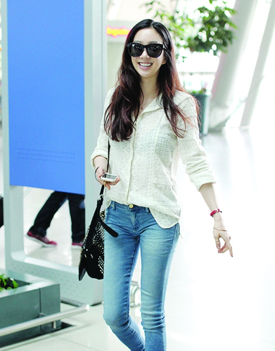 白衬衣×牛仔裤,看似随意,卷起的袖口,前短后长凸显身材比例的穿法,其实处处暗藏心机。