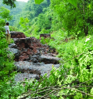 7月18日,吉首市峒河街道大田社区耀华锰业公司对面山上发现一处严重山体滑坡。主滑区长度(顺陡坡方向)超过500米。坡下居民和企业职工已紧急转移,相关路段已实行交通管制。社区党支部书记杨青春介绍,滑坡砸死了山下一户人家数只鸡,所幸无人员伤亡。