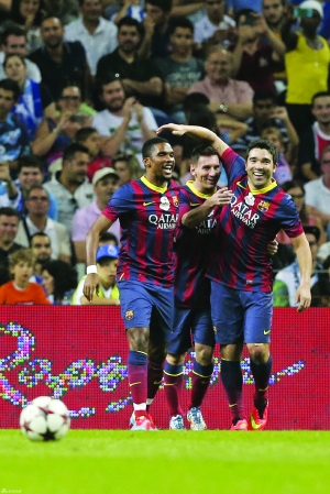 昨日,梅西(中)、埃托奥(左)在比赛中庆祝德科进球。当日,葡萄牙一代巨星德科的告别赛在葡萄牙波尔图的巨龙球场进行,对阵的双方是2004年的波尔图黄金一代和2006年的巴塞罗那梦二队,梅西、埃托奥、古德约翰森、范博梅尔、埃德米尔森等足坛名将都前来捧场,德科代表波尔图和巴塞罗那分别出场,最终两队4比4握手言和,德科代表两队分别打进一球。今年37岁的德科司职中场,现效力切尔西俱乐部,曾效力过巴塞罗那、圣保罗、波尔图、萨格罗斯、阿尔维加等足球俱乐部。德科是一名巴西裔球员,最早效力于巴西国内的圣保罗俱乐部,2003年获得葡萄牙国籍,正值巴西人斯科拉里执教葡萄牙,他入选国家队曾招致众多国家队老成员反对,但随着德科在波尔图的出色表现,并帮助球队赢得联赛冠军和欧洲冠军杯冠军。球迷称其为“超级德科”。 (据新华网) |
