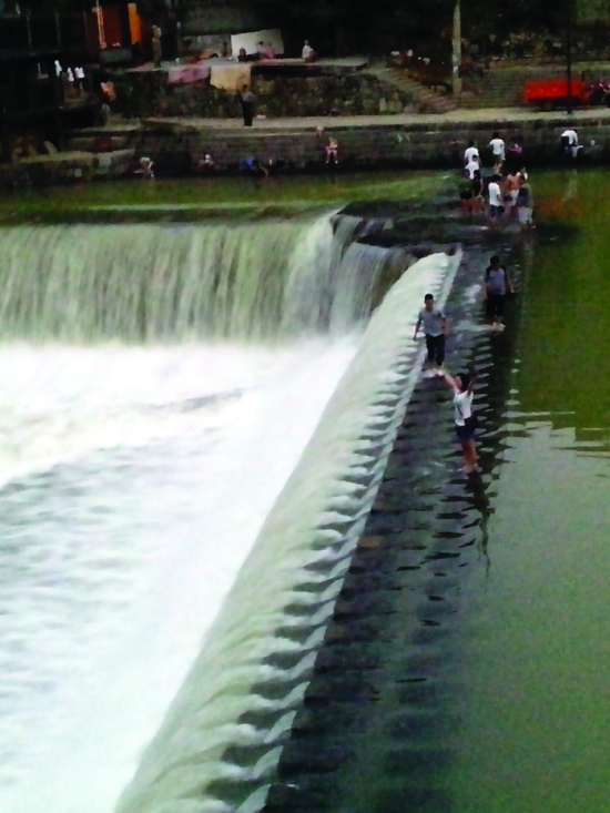 7月下旬,洪水虽退,一些游客、市民在吉首乾州古城万溶江边、跳岩上尽情玩水拍照,却忽视安全,令人担忧。 杨继东 摄