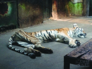 8月2日,网传“饿瘦”老虎在睡觉中。 8月1日晚间,微博“天津动物园饲养的一只老虎骨瘦如柴”引起广大网友关注。当日,记者来到天津动物园狮虎馆,据动物园工作人员介绍,目前,园中共有9只老虎,其余8只均体态正常,健康状况良好。而“饿瘦”老虎是成年母虎,2001年降生时被检查出患有消化系统紊乱症,随着年龄增长,现在已处于中老年期,消化系统紊乱症有所加剧因此身形消瘦,但不存在饥饿饲养等问题。 新华社记者 张晨霖 摄
