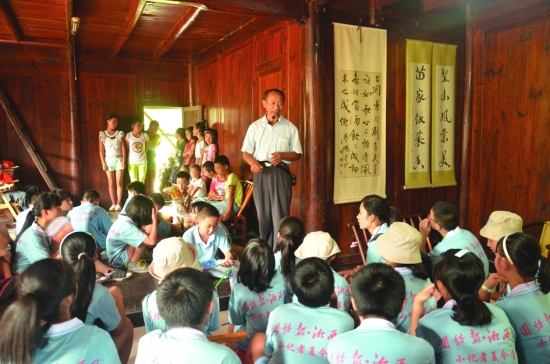 听苗族民俗专家、夯沙乡中学老校长石程发讲苗族的起源及文化。