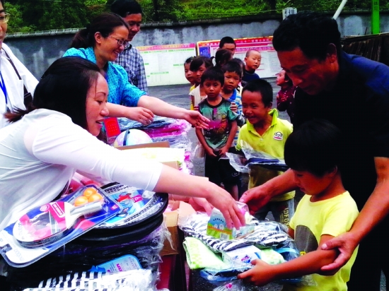 苗乡留守学生喜获新学期礼物。 杨继东 摄