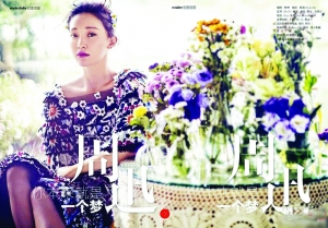 日前,周迅为《嘉人》杂志拍摄的一组写真大片曝光。照片中,周迅穿花裙,戴眼镜,似乎在演绎一种像“花仙子”一样的惬意生活。 (本报综合)