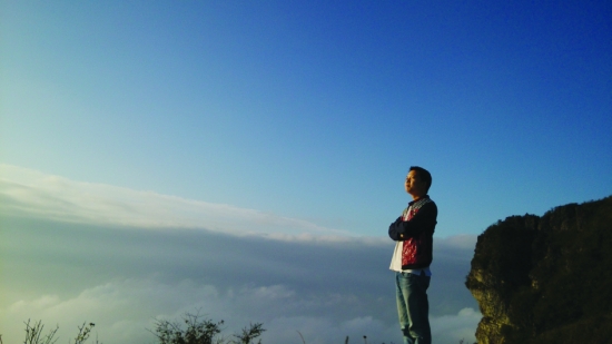 独立金秋,闲看风起云涌。 凌惜河 摄