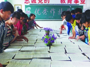 近期,龙山县召市初中开展学生优秀作业展览活动,帮助学生养成规范作业的良好习惯。作业展包括了语文、数学、历史、化学、政治、物理等八科,作业等级评价采用了文字式、字母式、VIP式、英雄联盟等级式、QQ等级式、CF等级式等多种方式。工整的字迹、规范的书写、美观的设计赢得了参观师生的称赞。