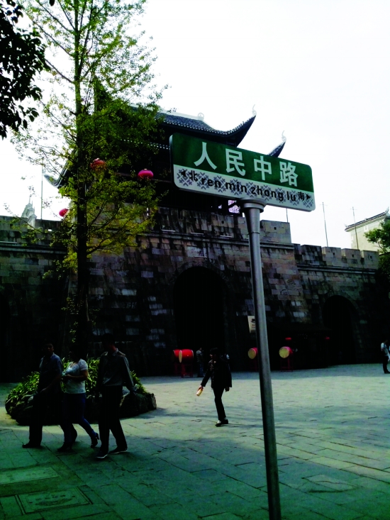 乾州古城外人民路路名牌。 杨继东 摄