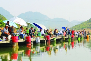 10月25日,湘黔渝部分钓鱼好手齐聚一地共磋钓技。当日,湘黔渝“‘幸福开心’自由渔”钓鱼邀请赛在花垣县花垣镇蚩尤村举行,来自湘黔渝三省市边区的80多名钓鱼爱好者参加比赛。此次比赛,除获奖选手可以获得相应的奖金外,所有的参赛选手还可以带走所钓得的鱼。