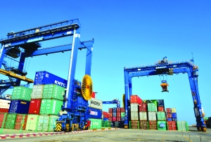 在全国石材最大输入港———泉州石狮市石湖港,变燃油为电能驱动的起重机在作业(11月21日摄)。