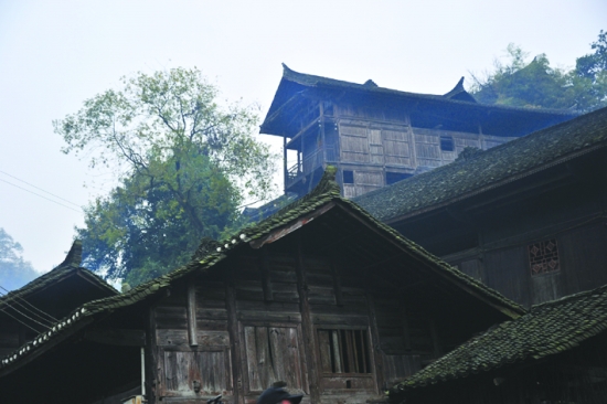 村庄古旧的苗居,就这样在峡谷中已不知有几多时日。 张 谨 摄
