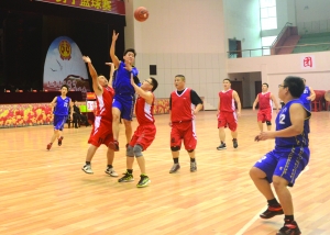 11月28日,保靖法院男篮代表队在比赛中跃起争球。当日,全州法院系统第九届“天平杯”男子篮球赛决赛在州民族中学体育馆落下帷幕,在为期五天的赛事中,保靖县法院代表队秉承“重在参与、重在健身、赛出风格、赛出水平”的精神,最终夺得本届“天平杯”男子篮球赛冠军。