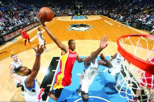 12月6日,火箭队球员阿里扎在比赛中大力灌篮。当日,NBA常规赛继续进行,火箭114比112加时赛险胜森林狼,新秀尼克-约翰逊准绝杀。火箭队方面,哈登38分4篮板6助攻,特里19分,阿里扎17分9篮板。 (据新华网)