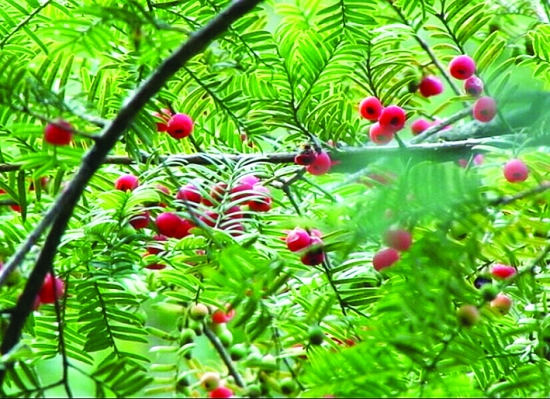 挂满果子的红豆杉(摄于11月28日)。 杨昊天 摄