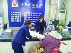 州工商系统积极贯彻落实扶持残疾人就业优惠政策,设立就业政策咨询窗口,为残疾人员免费提供政策咨询,开辟残疾人员申办个体工商户、私营企业“绿色通道”,开设专门窗口办理,提供“申请优先、受理优先、审批优先”的一站式服务。对从事个体经营的残疾人在登记工作中,做到登记表一次给清、咨询事项一次说清、办照程序一次讲清。鼓励、扶持残疾人自主择业、自主创业,落实各项促进残疾人就业和再就业的优惠政策。图为州工商局工作人员手把手指导残疾人办理营业执照。