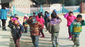12月24日,永顺县硕乐村小平整的操场上,一年级的孩子们在快乐地活动。据了解,该村小于今年秋季开学恢复,村里的孩子们又可以在家门口读书了,既方便又安全。