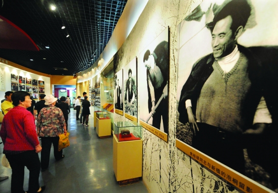 参观者在河南兰考焦裕禄同志纪念馆内观看焦裕禄事迹展览(2014年5月14日摄)。 新华社记者 李 安 摄