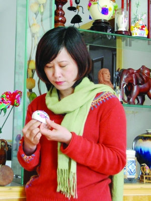 在厚度仅为0.3毫米轻薄易碎的家禽蛋壳上打上一千多个大小一致的细孔,然后再用苗绣的手法,以丝线或缎带或彩珠,运用平针、打籽、柳叶、藏针等多种针法绣出花卉、人物、脸谱、吉祥文字、风景、静物等图案……这样的表述定会让许多人惊讶,蛋壳上绣花?难不成是仙女下凡?