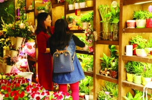 一家花店的熊老板介绍,“春节临近期间,很多人都会来买一些色彩艳丽的鲜花和绿色植物摆在家中,喜庆又温馨。最近我们的鲜花和绿色盆栽植物销售特别好,是平时的2-3倍。”
