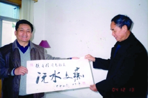 高兴之余,我又将我此行携带的其他礼品赠送他,说他去年给我们题写的“泸溪作家”报名的毛笔字写得非常漂亮,这回特请他给我和我的文友姚本奎等各题辞,以作纪念……还特别提醒他说姚本奎为我花费了很大气力为我拍摄制作这个专题片《沅水文痴》,一定要给他题个好辞,代我还个礼,他笑问:“这个专题片是否播出了?”我立刻回答说:“不仅在县电视台、州电视台播出了,而且在省电视台也播出了……”