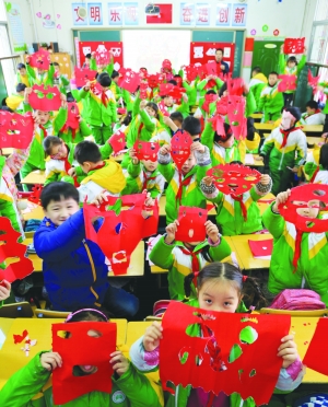 3月10日,吉首大学师范学院附属小学,同学们在展示亲手制作的傩面具。傩戏是湘西苗族古老的傩文化载体,是古朴、原始、独特的戏曲样式。该校将傩戏文化引进课堂,让学生制作傩戏面具,感受古老而神秘的傩戏文化。