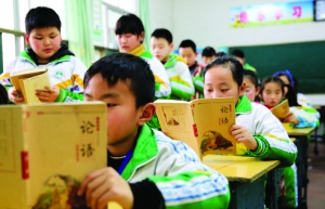 3月17日,吉首大学师范学院附属小学内,同学们在学习国学经典。今年春季开学该校开设校本课程,将《弟子规》《千字文》《论语》等国学经典,分别引进低、中、高年级课堂,每周进行两个课时的学习,对学生加强传统美德和国学经典的教育。