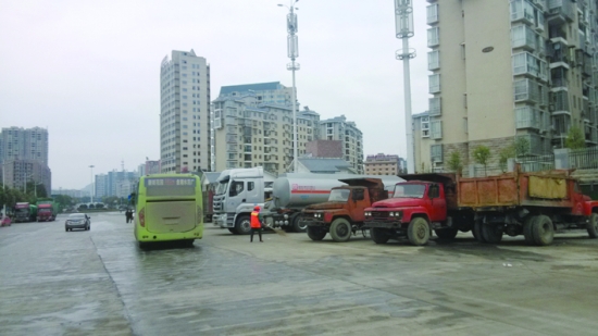 公交车被迫临时停放在道路中央。 顾勇兵 摄