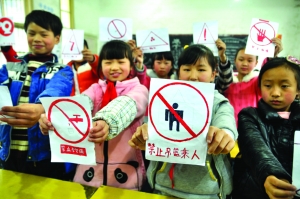 3月16日,龙山内溪学校,学生们在课堂上展示自己制作的安全标识。为普及安全标识常识、提高学生的安全意识及安全防范能力,该校通过安全教育主题活动课,将安全标识制作引进课堂,让学生在快乐制作与展示过程中收获安全知识。
