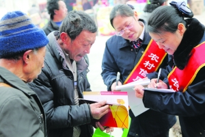3月23日,龙山信用联社工作人员在该县靛房镇向过往群众宣传金融知识。该信用联社组织的2015年迎新春业务宣传活动从2月下旬启动,为期一个月,主题为“服务三农、服务百姓、服务客户”。该信用联社组织“迎新春”业务宣传队深入全县42个营业网点开展金融知识下乡宣传服务活动,向广大群众宣讲农信社存款政策、信贷产品、电子银行业务、反假币、反洗钱等金融知识,详细答释现场咨询12000多人次,发放宣传资料30000多份。