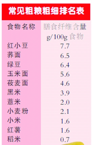 每天吃一顿粗粮,是许多追求健康的人遵循的饮食习惯。其实,每天只吃一顿粗粮并不够。 提倡吃粗粮,主要是为了获得其中丰富的膳食纤维,以预防便秘、肠癌、高血脂、肥胖等问题。按世界卫生组织的推荐,每天吃25—30克膳食纤维比较合适。成年人每天应该吃一斤蔬菜和半斤水果,一斤菜可以提供10克纤维,半斤水果可以提供5克纤维,这样加起来只有15克纤维,而剩下的量就必须靠粗粮来提供了。 如果我们每天只吃一顿粗粮,按照一顿100克计算,大约能获得6克膳食纤维,如果把这些粗粮全部换成“最粗”的豆子,也只有不到8克的膳食纤维,还远远不够标准。 怎样才能吃够粗粮呢?首先,要尽量选择更粗的粗粮。粗粮家族中也有“粗细之分”,有的种类膳食纤维更高,有的略低。一般来说,豆类就比米类更粗一些。其次,每天不只吃一顿粗粮,其他两顿饭也要粗细结合:比如把白米饭换成红豆饭或红薯饭,把白面馒头换成全麦馒头。 当然,粗粮并不是吃得越多越好。如果每天摄入的膳食纤维超过50克,就会妨碍消化,引起贫血。这里为大家提供一个常见粗粮的“粗细排名表”,帮助大家放心吃好、吃够粗粮。 (贾丽立) |