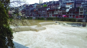 4月3日,连续一夜的春雨后,流经吉首城区的峒河泛起了春汛。据天气预报,今年清明节期间,吉首地区将出现集中的降水,春季防汛安全不容忽视。 记者 杨继东 摄
